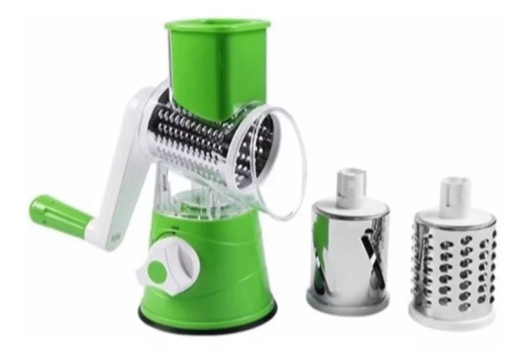 - Incluye: Base de cortador de verduras, tazón de molienda, 3 cuchillas de tambor y mango.
